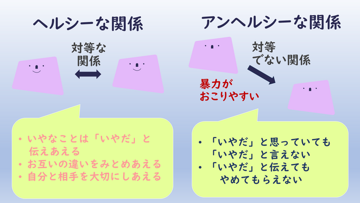 身近な人に伝えてみませんか?あなたと私は、ヘルシーな関係。私たちは、ヘルシーな関係でいよう。
