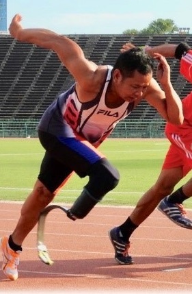ポルポト政権下、農民として働かされていたときに地雷を踏んだことにより、右足を負傷し、ひざ下から切断した選手。