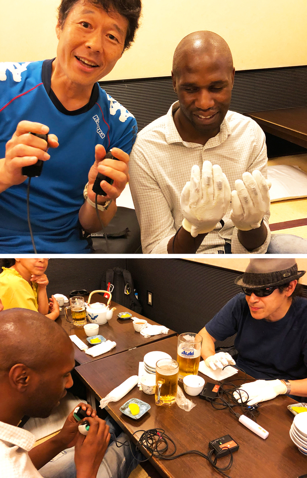 せっかくの機会なので、僕は見えなくて聞こえない盲ろう者とコミュニケーションするために、日本にはこんなユニークな手段ががあるんですよ!と、「ウエアラブル指点字ツール」を紹介しました。