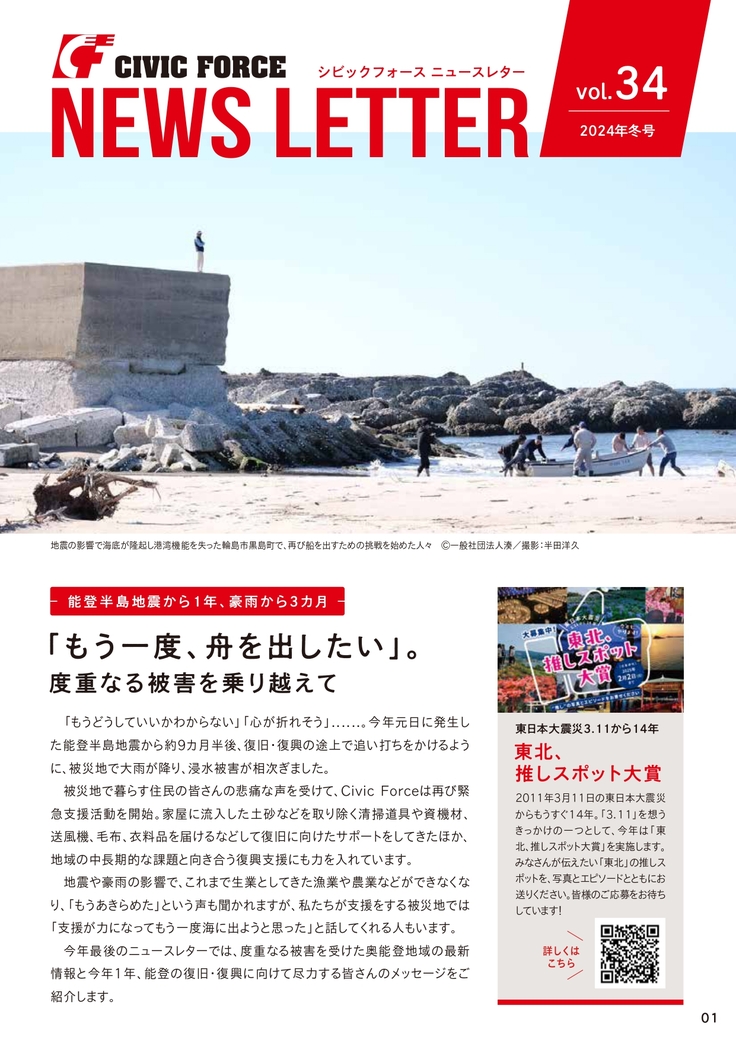 今年最後のニュースレターでは度重なる被害を受けた奥能登地域の最新情報と今年1年、能登の復旧・復興に向けて尽力する皆さんのメッセージをご紹介しています。