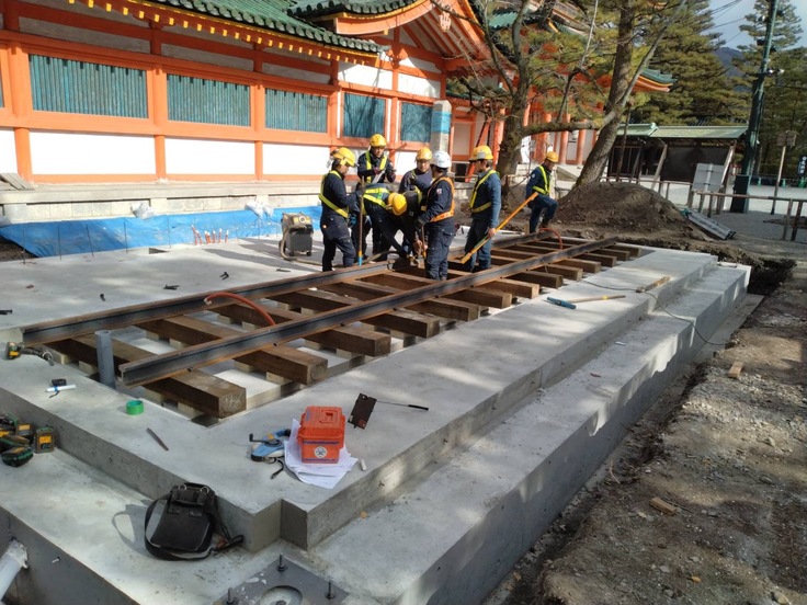 移築先では、覆屋とレールの設置が進み、徐々に形になってきています。