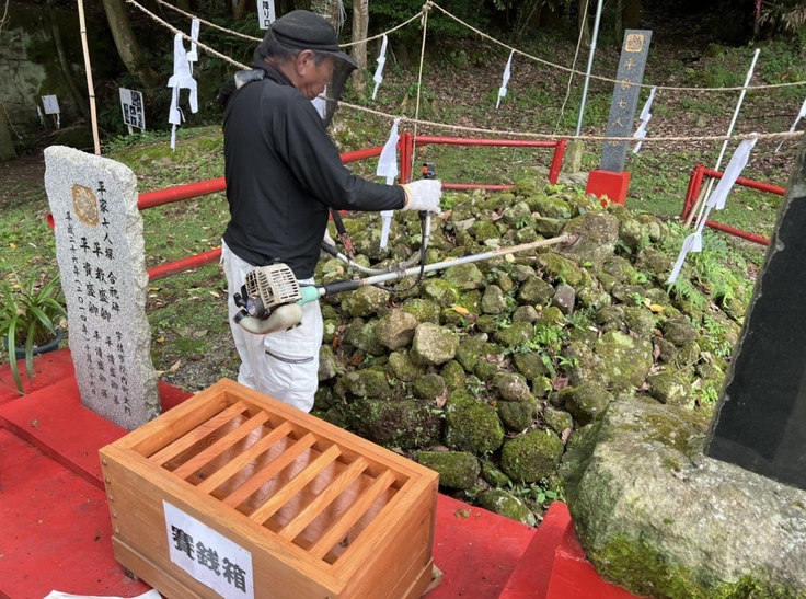 平家七人塚とその周辺を草刈り機を使って草を刈り、お手入れをさせていただきました。