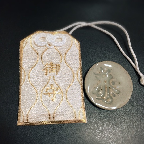 山形市平清水の伝統的な焼き物平清水焼きで作った大日如来の梵字入りの御守りを、イベント当日に祈願し身代わり御守りとしてお送りします。