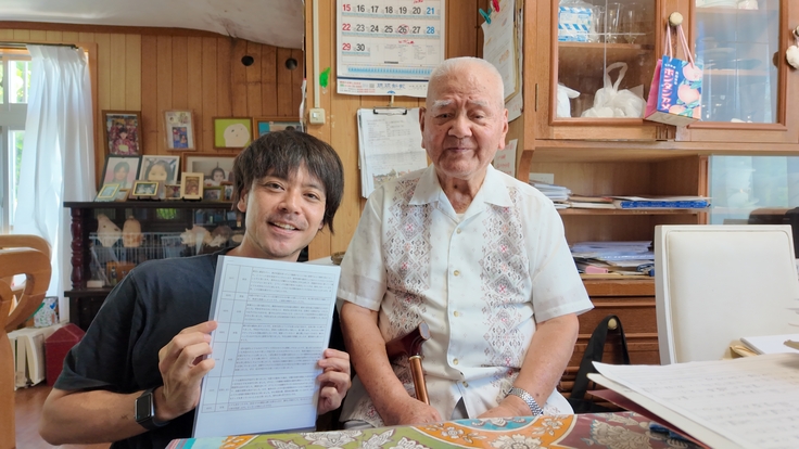 きょう、大城勇一さんのご自宅に伺って、平和劇のお客さまアンケートをお渡ししてきました。