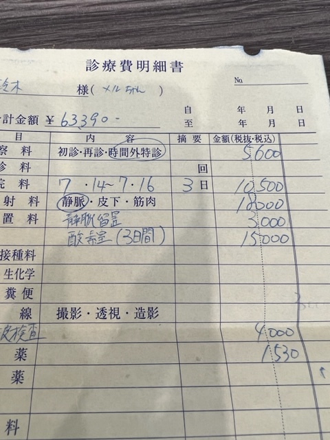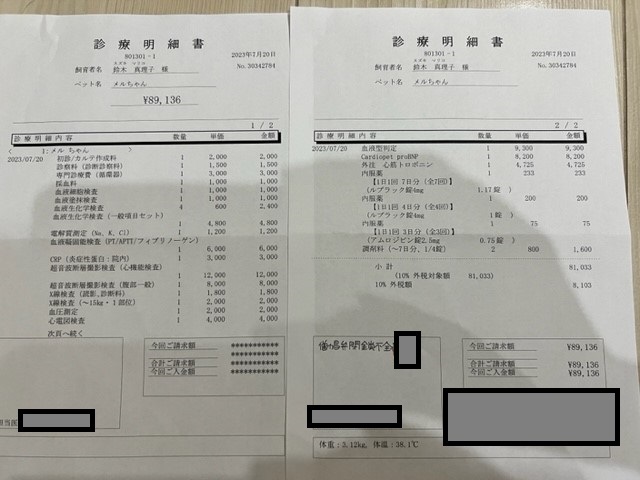 今年に入ってからの薬代(月3万円程度)、検査代(心臓の検査は1回2万5千程度)、