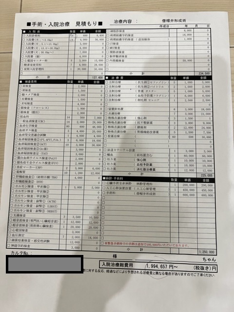 私が手術の検討などをしている話もしたのですが、獣医師の説明では高額だったり手術がどこでも