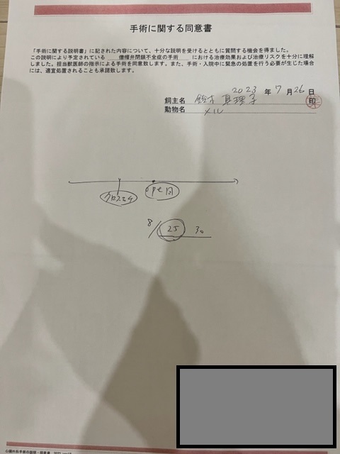 手術前の説明、同意書、見積もりをいただいていますので下記に掲載します。