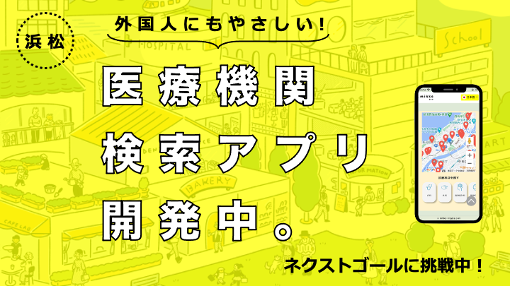 多国籍クリニック検索アプリ(mikke)とは、日本在住の非日本語ネイティブが、病気やケガをした際に、多言語対応可能な医療機関を検索できるアプリです。ヘルプユープロジェクトが発足した『新潟県エリア』から範囲を拡大し、この度『浜松エリア』に展開し始めました。