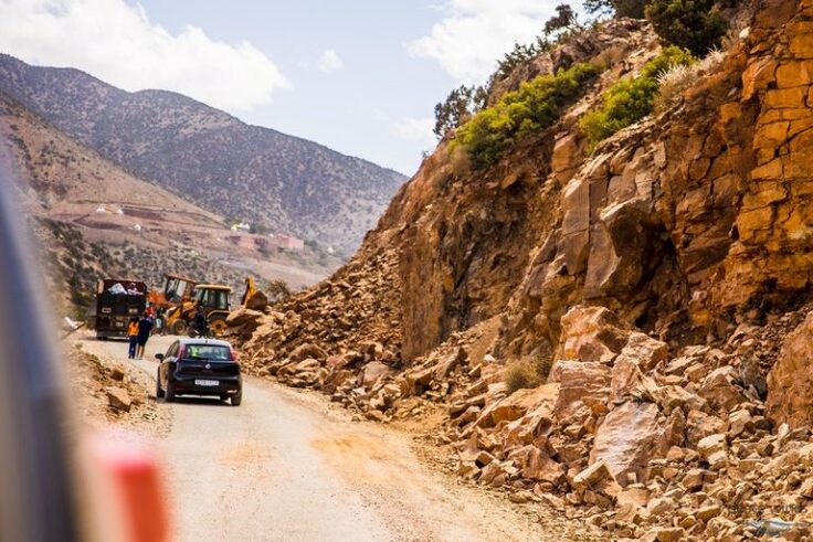 モロッコにいる現地支援チームは、山間部の被災地を中心にニーズ調査と物資支援を行っています。山間部への安全なアクセスの確保は、今回の被災地支援におけるネック。2日前に訪れた山間部の集落へ物資を持って再び訪問を試みるも、道中の崩落により引き返せざるを得ない状況にも遭遇しています。