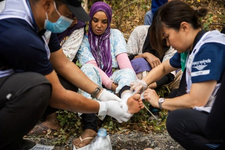 口々に症状を訴える被災者に味呑看護師は通訳を介しながらも、被災者の目を見て「そうですよね。大変ですよね」と語りかけます。