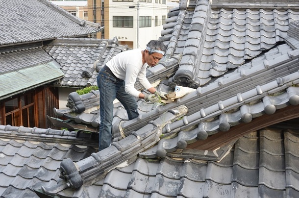 春陽荘では、環境に配慮した施設運営をするために、清掃用品やシャンプー・リンスなどは生物分解性の高い商品を選んで使用しています。庭の手入れも当然除草剤など化学物質や界面活性剤を含むものは使わないのですが、瓦屋根に植生するものはどうしても引き抜くしかありません。きれいな色のお花が咲いていましたが、根が屋根材やその隙間を貫通すると雨漏りしてしまいます。これらの雑草も乾燥すれば、薪ボイラーで燃やせます。しっかりと小さな命も無駄にせず、役立てたいと思います。