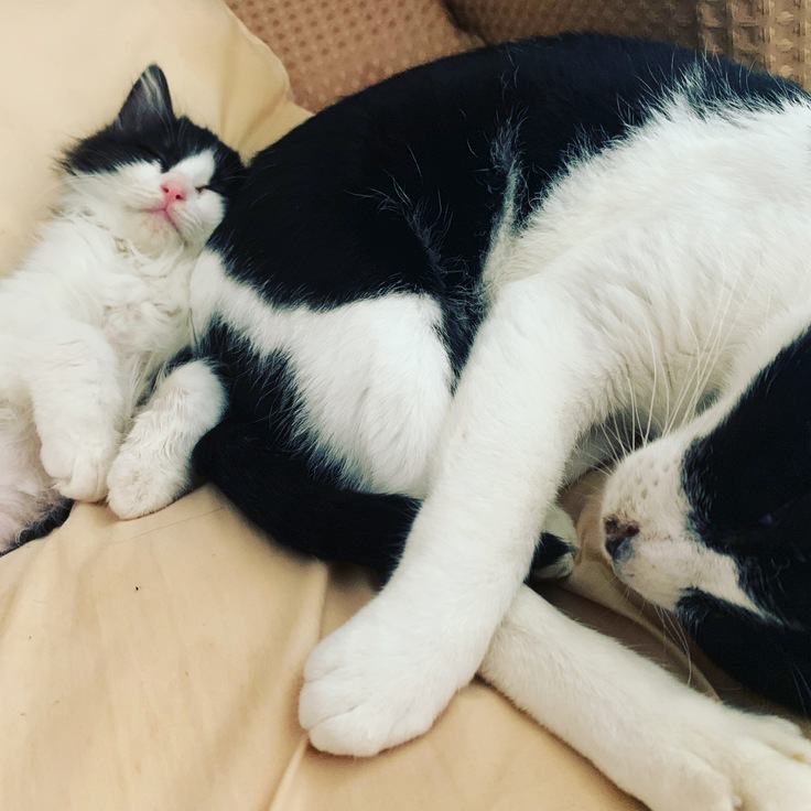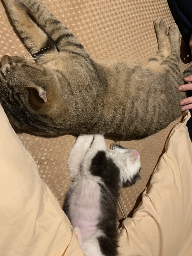 ふわりはとても人懐っこい性格で、先住猫とすぐに仲良くなりました。一緒に引き取ったお兄さん猫のキジくんとも、とても仲が良く、毎日毎日微笑ましい交流を見せてくれます。