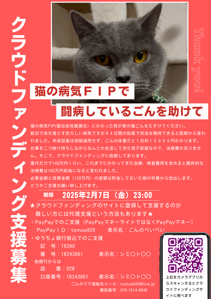 ジジを助けたいです。元野良猫ジジのFIP治療費のお願い。