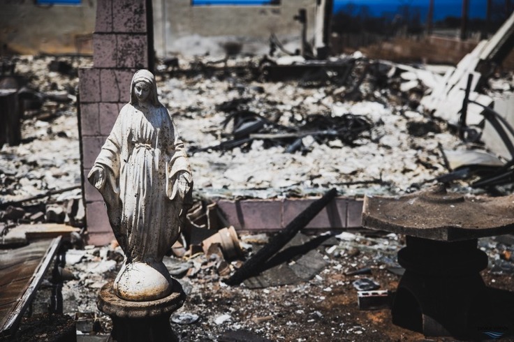 わずかに残ったコンクリート塀も少し手で押せばボロリと崩れるほど熱によって劣化しています。「今見えている焼け残りも、どのみちすべて取り壊さないといけない。クレイジーな話だよ」地元の若者たちが話を聞かせてくれました。