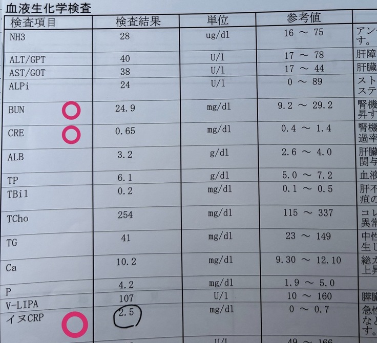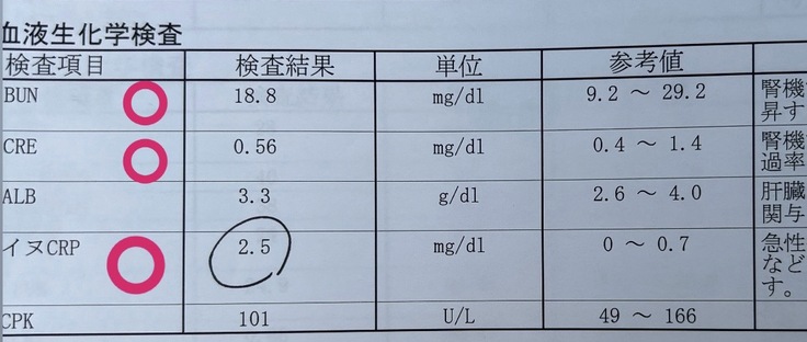 CRPという炎症の数値が少し上がってしまっていますが、20日と今朝の検査で値に差がないことから悪化はしていないとの事でした。