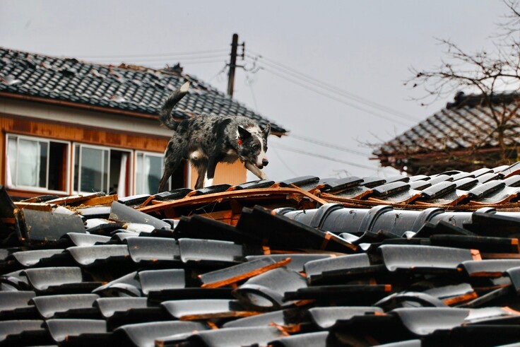 ハンドラーの大西は「救助犬ロジャーは、雨が降って滑りやすい屋根の上も臆さず進んで捜索してくれた。その頑張りを褒めてあげたい」と、救助犬の奮闘ぶりを報告。