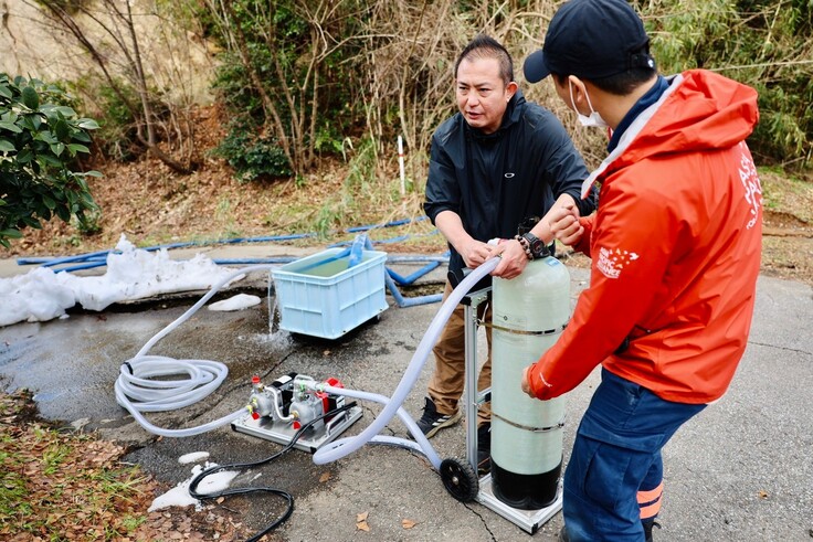 給水は、健康面だけでなく、深刻な問題となっている衛生面の改善にもつながり、これまで劣悪だったトイレ環境も大きく改善されることが期待されます。先の見えない状況のなか、被災者の方の気持ちが少しでも前向きになればと願ってやみません。