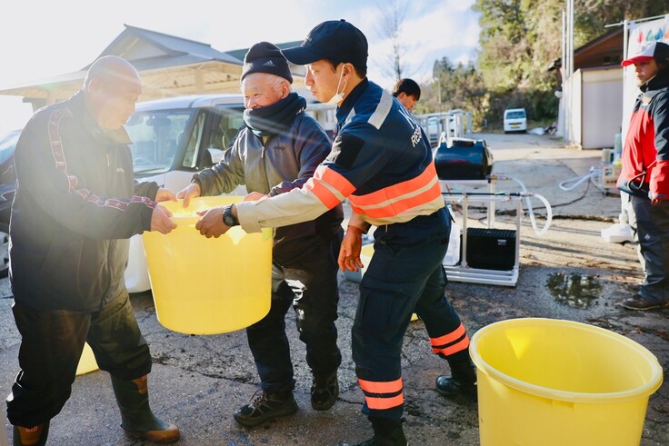 「水は飲み水だけじゃなくて何にでも使う。ここには、別の企業から支援でもらった大きな水のタンクがあるので、ほかの避難所の人たちも水を取りに来ていたから、いくらあってもすぐになくなっていた。本当にありがたい。水は冷たいけどね、心はあったまるよ」