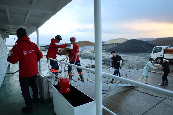 1月2日夜に愛媛県今治市を出航した「豊島丸」は途中、水や食料をはじめ、ニーズの高い生活用品の支援物資を積み、本日13時頃、珠洲市の飯田港に接岸。16時すぎには市と協力し、積載してきた支援物資を搬出する作業が行われました。