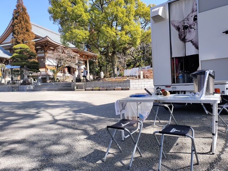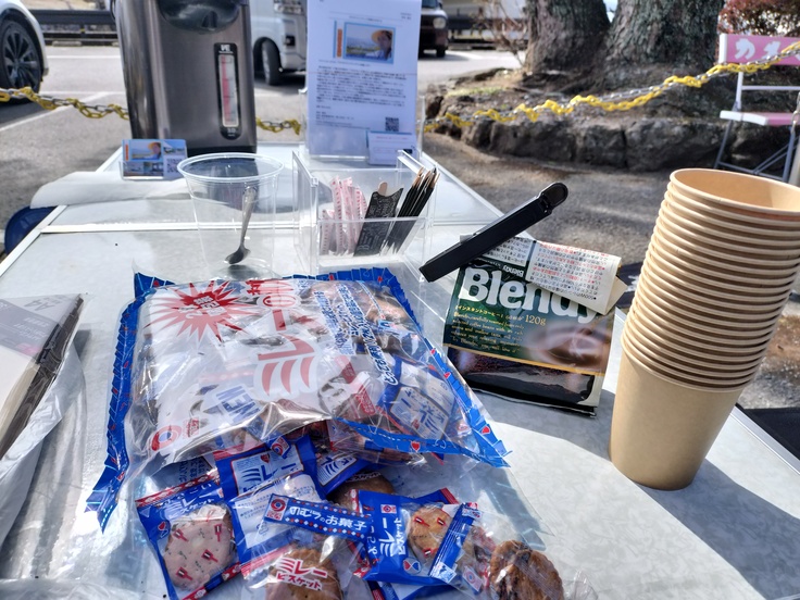 沢山の方が清掃活動をしながら歩かれているので、善楽寺さんでコーヒーとお菓子のお接待を行いながら、クラファンの広報活動もしていました。
