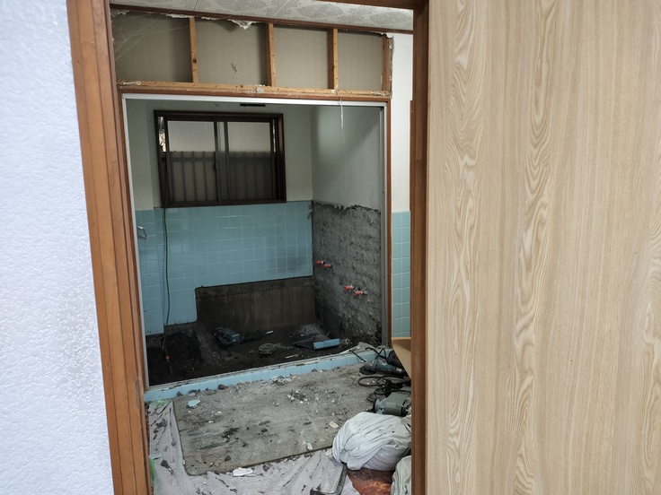 今日は解体がメインで、リフォーム予定のお風呂とトイレをすべて解体しました。