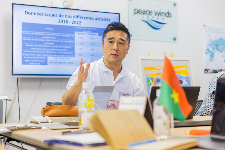 ピースウィンズ・ジャパンが開いた記者会見にも参加。カニア博士とサノンさんは、ブルキナファソにおける肝炎ウイルスの感染拡大の経緯についてなど、記者からの質問に答えました。