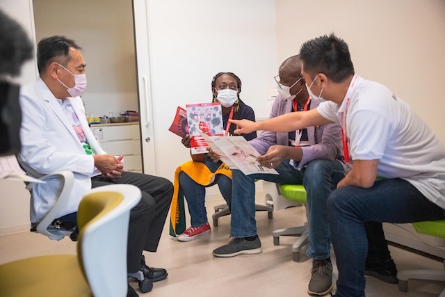 病院見学では、江口先生から病院内をくまなくご案内いただき、また、佐賀県の肝炎医療コーディネーターのとりくみや、このクラウドファンディングのご寄付を活用して日本から贈られる検査機器「フィブロスキャン」について、説明を受け、懇談をしました。