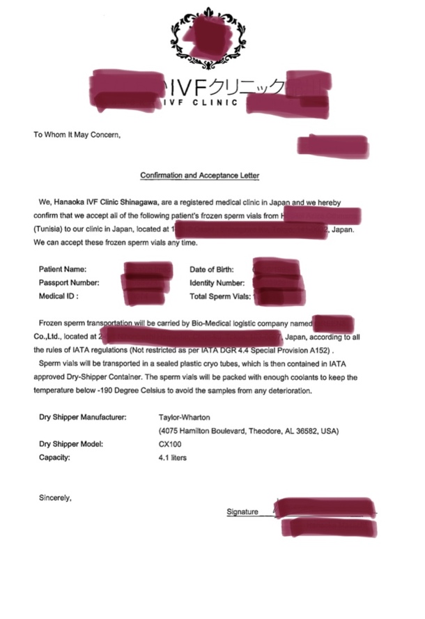 今日はチュニジアのクリニックに保存されている凍結胚を日本のクリニックへ輸送するにあたり、手続きでまず必要な書類たちをご紹介します。