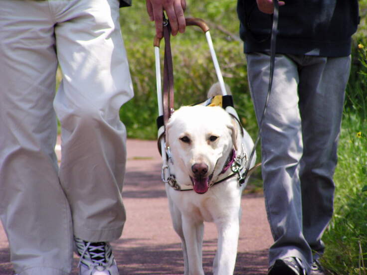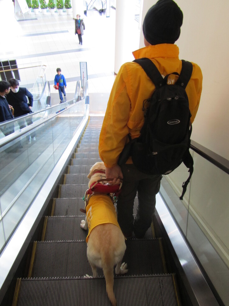 「角を教える、段差を教える、障害物を教える、道の端を歩く、指示した方向へ進む、目的物へ案内する」これらが盲導犬の主なお仕事になります。