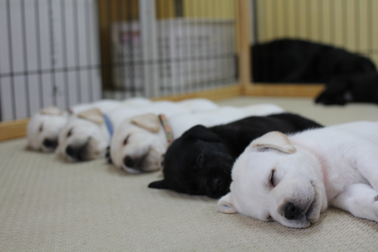 盲導犬はボランティアさんにたくさんの愛情を注がれた「繁殖犬」から生まれ、その後の約2か月間をボランティアさんのお宅でお母さん犬、兄弟犬たちと共に犬社会のマナーを学びながら過ごします!