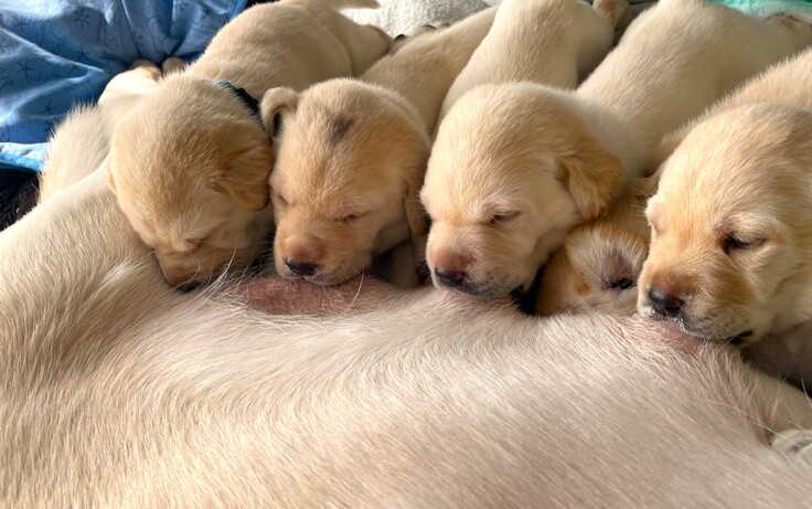盲導犬は「繁殖犬」と呼ばれるお母さん犬、お父さん犬から誕生します。そして、生後2か月になるまでは、お母さん犬や兄弟犬と共に犬社会のマナーを学びながら育ちます。