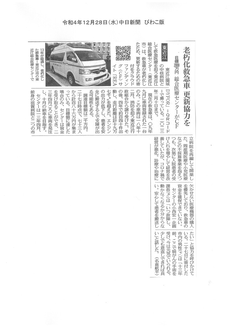 本日、中日新聞で当院のプロジェクトについてご紹介いただきました。来年「目標達成できました」と報告できるよう、全力で取り組んで参ります。