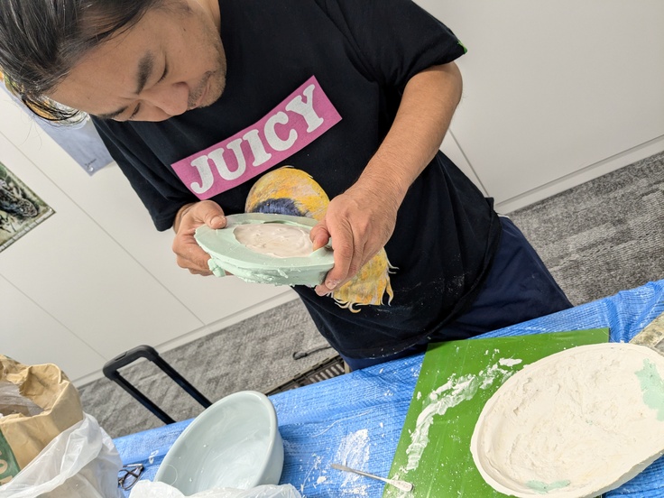 西城駅に保管されている「足型」からシリコン型を作成し、