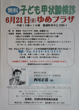▲2015年6月の「子ども甲状腺検診」案内ポスター