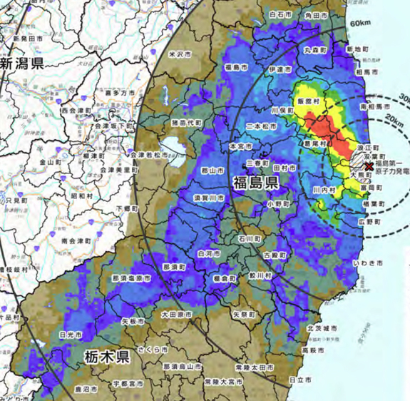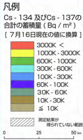 ▼2011年7月時点のセシウム分布量(Bq/㎡)