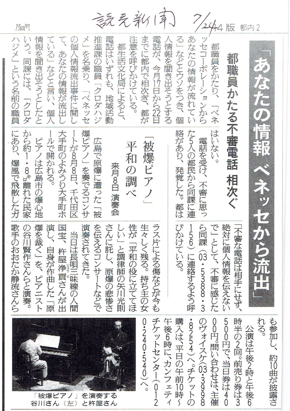 「未来への伝言」として、人間国宝の杵屋淨貢先生、谷川賢作さん、おおたか静流さん、飯田輝雄さんとのプロジェクトをはじめて6年。被爆ピアノをいつも奏でる状態に整えてくれる調律師 矢川光則さんに感謝!!!