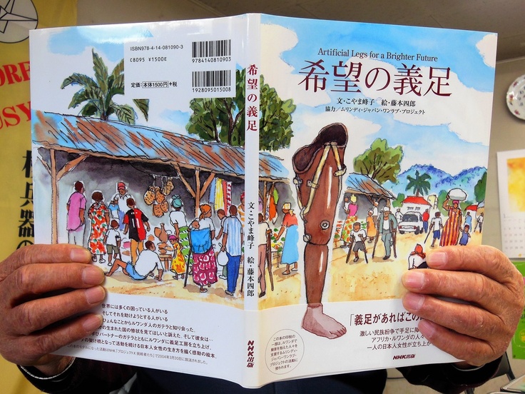 こやま峰子さんと藤本四郎さんが作った『希望の義足』(NHK出版)をいただきました!絵本の帯には「「義足があればこの国は変わる」 激しい民族紛争で手足に障害を抱え苦しむアフリカ・ルワンダの人びとの姿に一人の日本人女性が立ち上がった。」とあります。
