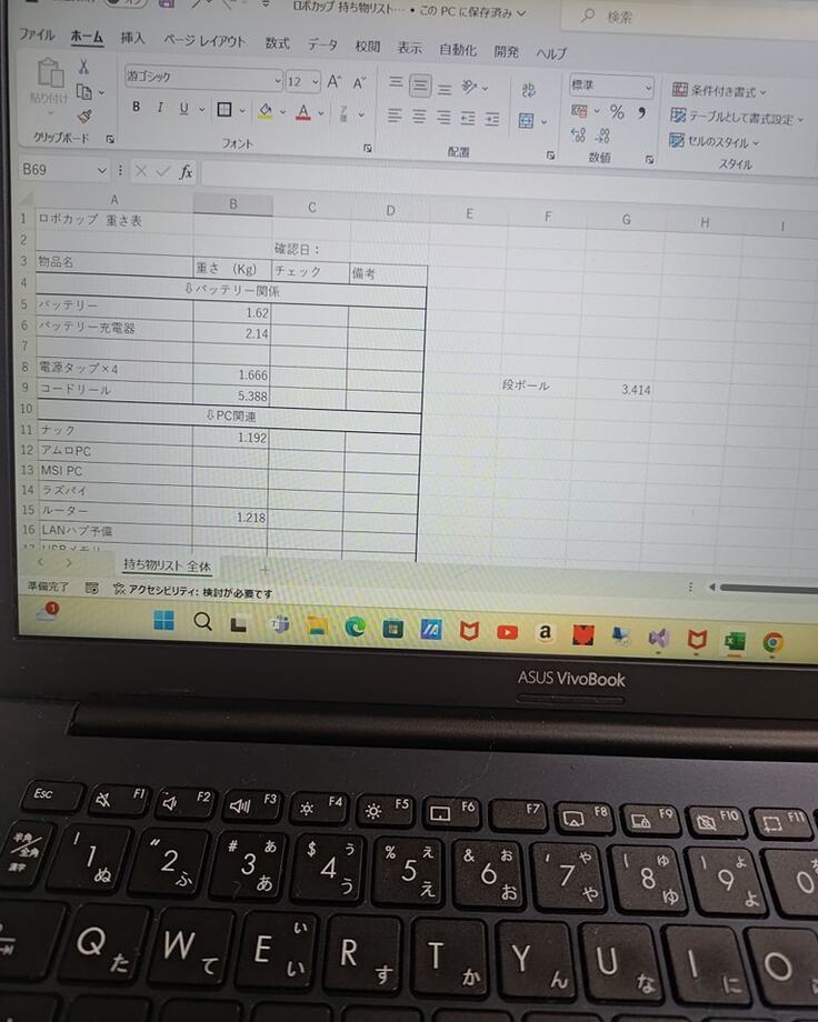 実は、ロボットを業者などに輸送依頼すると1ヶ月前に発送しないといけなかったり, 高額な輸送量(150万円程度)がかかるため, いつも手荷物で持って行っています。そのため、手荷物制限の23[kg]にパッキングしないといけなかったり, 自分の服などの荷物を少なくするなど, 重量の計算は重要な仕事の一つです