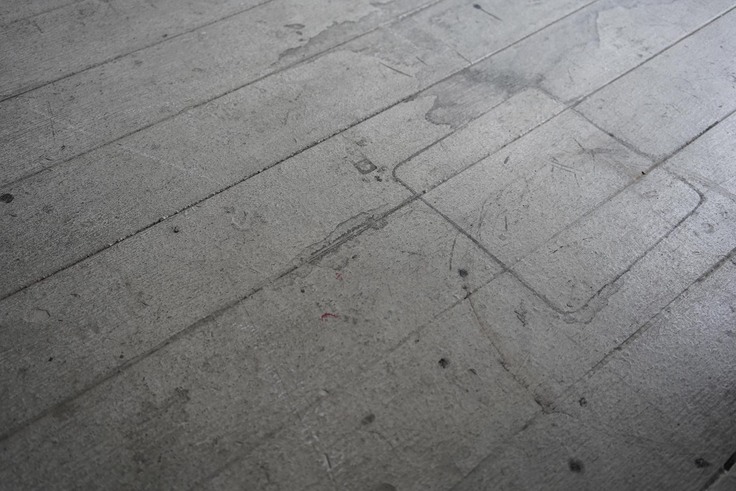 プロジェクトメンバーが初めてアトリエを訪れたとき、室内には多くの作品や画材、参考資料といった作品制作に関連するものに加え、生活用品や廃棄予定のもの、また一見何かわからないものなども存在していました。さらに、アトリエの床に散った絵の具や壁の落書きなどからは、アトリエでの活動の痕跡や年月の経過を感じ取ることができました。