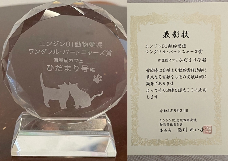 令和4年9月には、川島なお美さんのご主人である鎧塚様のご推薦により、エンジン01文化戦略会議にて「ワンダフルパートニャーズ賞」をいただくことができました。