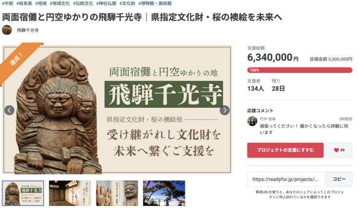 このたびは飛騨千光寺のクラウドファンディングを応援くださり、誠にありがとうございます。