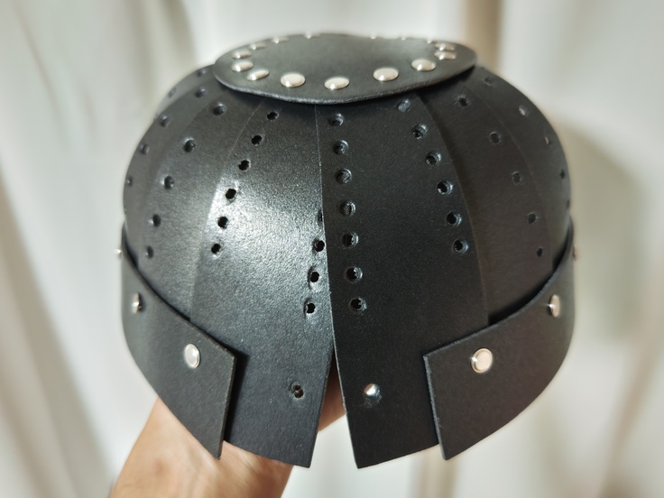 大鎧が出来てより、兜の製作に取り掛かっておりまして、材料は異なりますが、極力当時の作り方を追求して兜の製作に挑んで、ようやくに間もなく完成と言うところまでこぎ着けました。