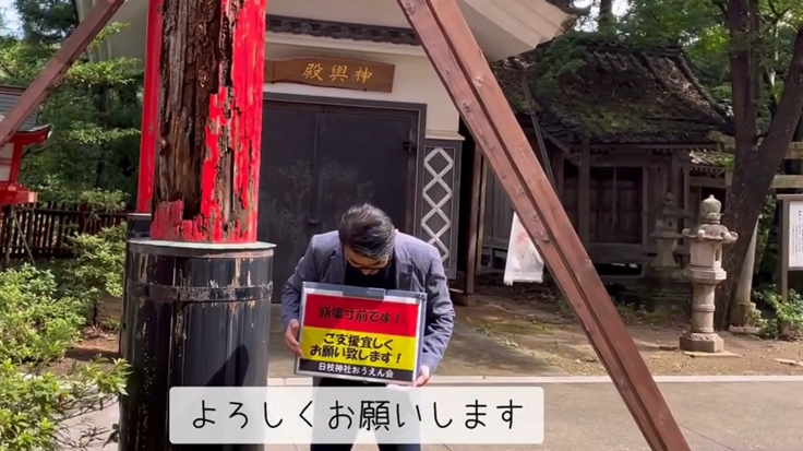 倒壊の危機にある山王鳥居の修復に向けて。そしてこのプロジェクトが、日枝神社の新たなスタートを切るシンボルとなるように願って。