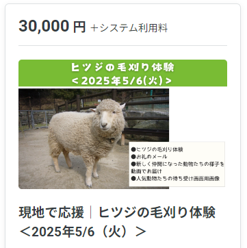 ▶︎現地で応援|ヒツジの毛刈り体験<2025年5/6(火)>をご支援されたい方は、下記の画像をクリックすることで、該当のリターンの支援に移動します。