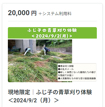 ▶︎現地限定|ふじ子の青草刈り体験<2024/9/2(月)>をご支援されたい方は、下記の画像をクリックすることで、該当のリターンの支援に移動します。