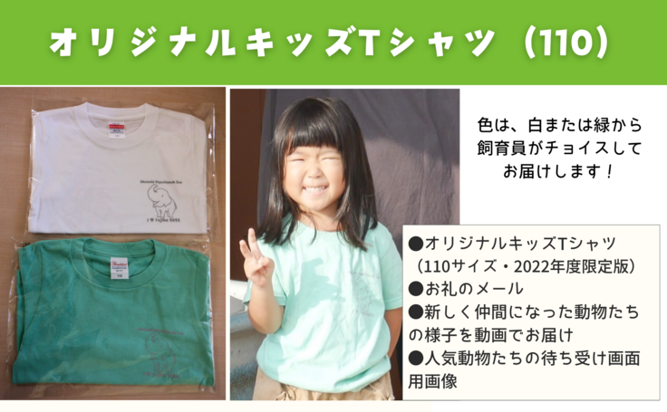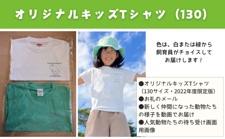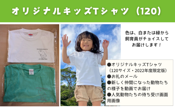 サイズは110、120、130があります。 色は、白または緑から飼育員がチョイスしてお届けします!各サイズ限定15個ずつとなります。