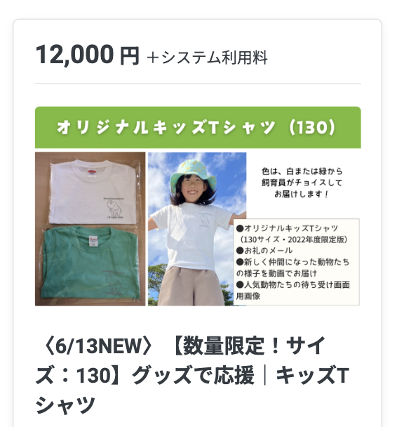▶︎【数量限定!】グッズで応援|キッズTシャツ(サイズ:130)をご支援されたい方は、下記の画像をクリックすることで、該当のリターンの支援に移動します。