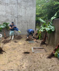 園に持ち帰ると、すでにバナナ園園長自らバナナの木を植える穴掘りを進めてくれていて、そのまま園長の指示のもと沢山の苗を植えることが出来ました!(もちろん園長が一番頑張ってましたよ)