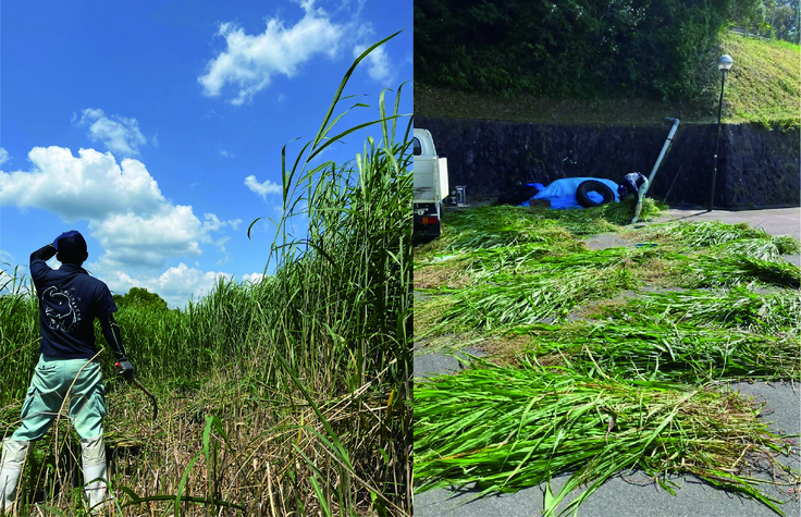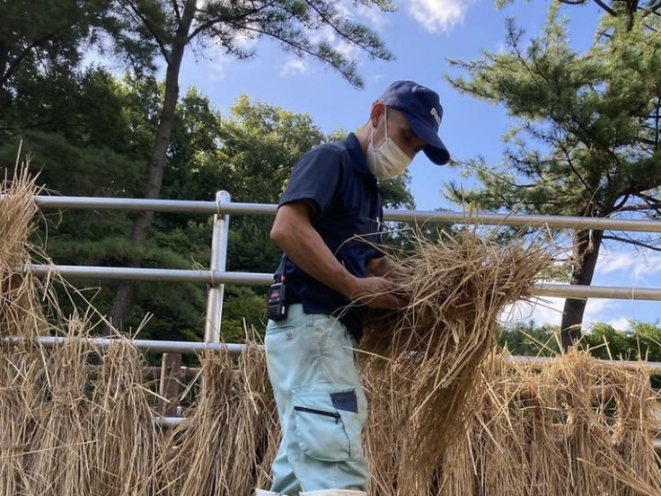 稲が大好きなふじ子さんのために収穫の時にお邪魔させていただき、そこから飼育員総出でとある作業が始まります。