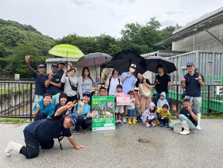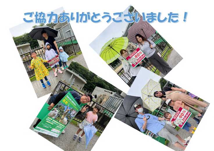 本日は90%達成を記念して来園者さんとゾウ舎前で記念撮影をさせていただきました。あいにくの天気で朝から雨がしとしとと降る中、たくさんの来園者さんに集まっていただけました。撮影にご協力いただいた皆様、突然のお声かけにも関わらず快くご協力いただき、ありがとうございました!